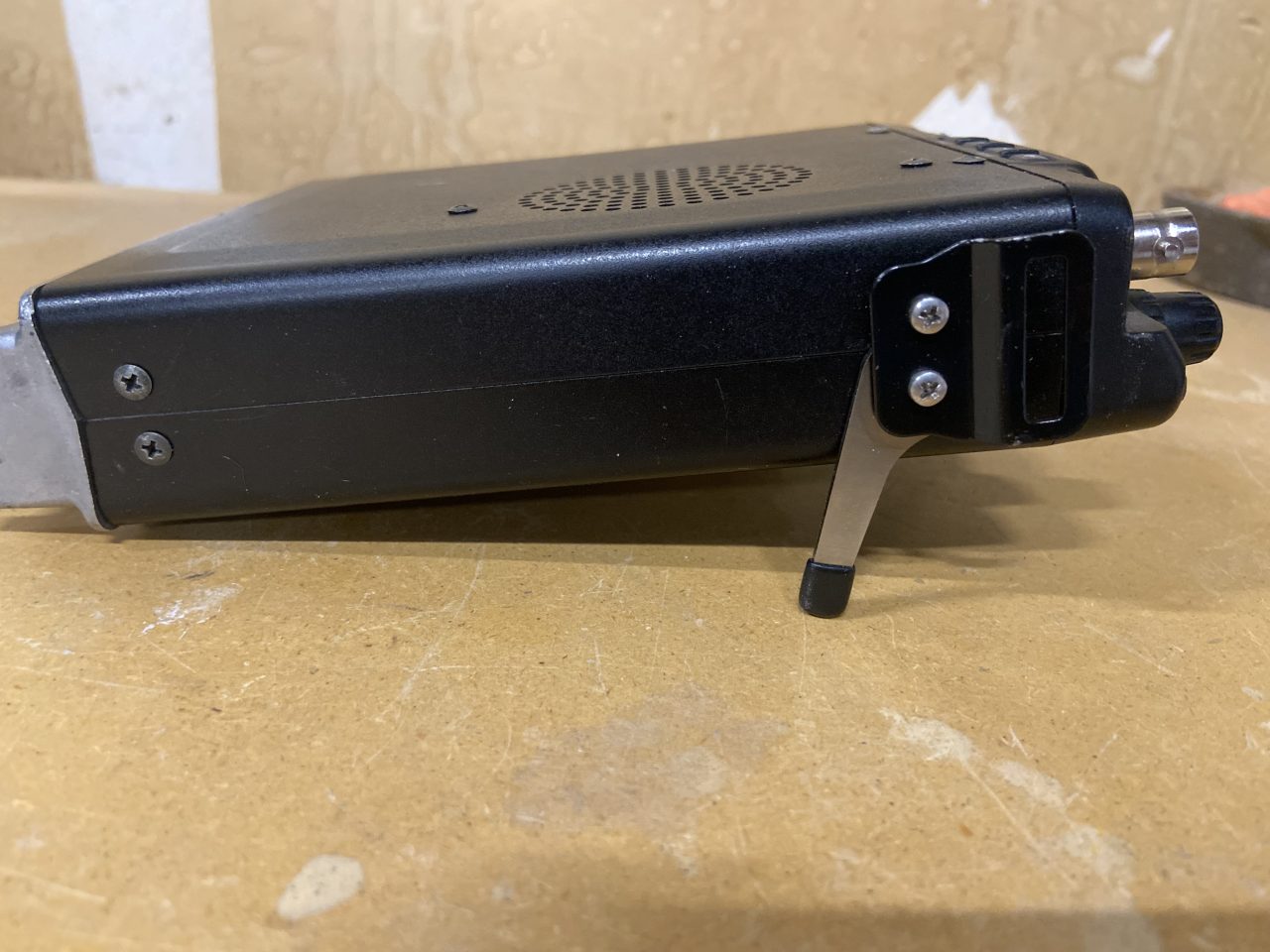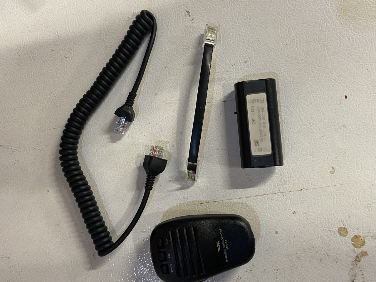 Very good shape. CW 500 Hz narrow filter installed. Anderson connectors installed. Booster for microphone included. Tilting little legs on the sides.
